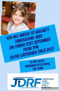 Abigail, an 11 year old parishioner, is inviting you to her fundraising Quiz for a charity that helps people who are diagnosed with Type 1 diabetes on Friday, 21st September at 7pm at the Greyfriars (NG3 2LG). £5 per ticket, max. 8 people per team. Will we be able to support her with an Our Lady’s or Infant of Prague team?